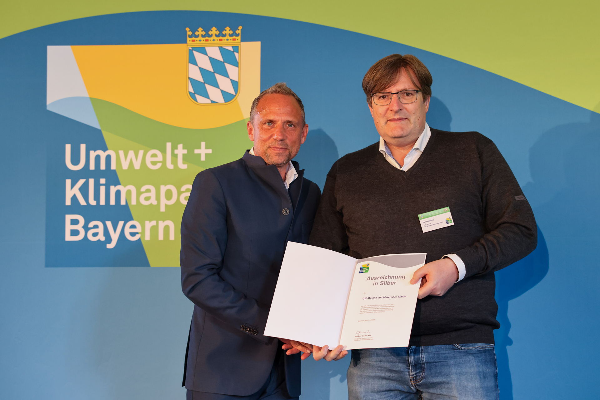 AMG TITANIUM - GfE Metalle und Materialien GmbH was honored with the Silver Certificate of the Bavarian Environmental and Climate Pact at a ceremony in the Munich Residenz, with the award presented by Bavarian Environment Minister Thorsten Glauber. The award recognizes companies that demonstrate a strong long-term commitment to climate protection and sustainability.
